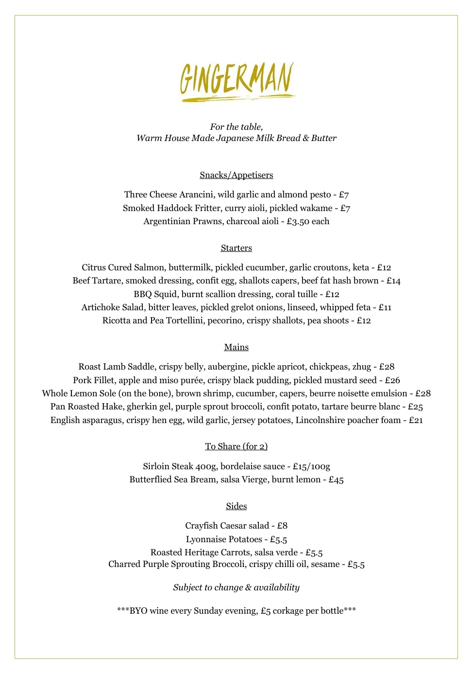 OUR MENU OUR MENU CHEFS SELECTIONCHEFS VEGETARIAN SELECTIONA LA CARTE DESSERTSSET LUNCH MENUSUNDAY LUNCHWINE & DRINKS Click here to see a larger version of the current Menu Click here to see a larger version of the current Menu Click here to see a larger version of the current Menu Click here to see a larger version of the current Menu Gingerman wine & drinks list KEEP IN TOUCH WITH THE LATEST GINGER NEWS & EVENTS First Name Last Name Email Address Please email me with great offers and information about what's going on at our venues *